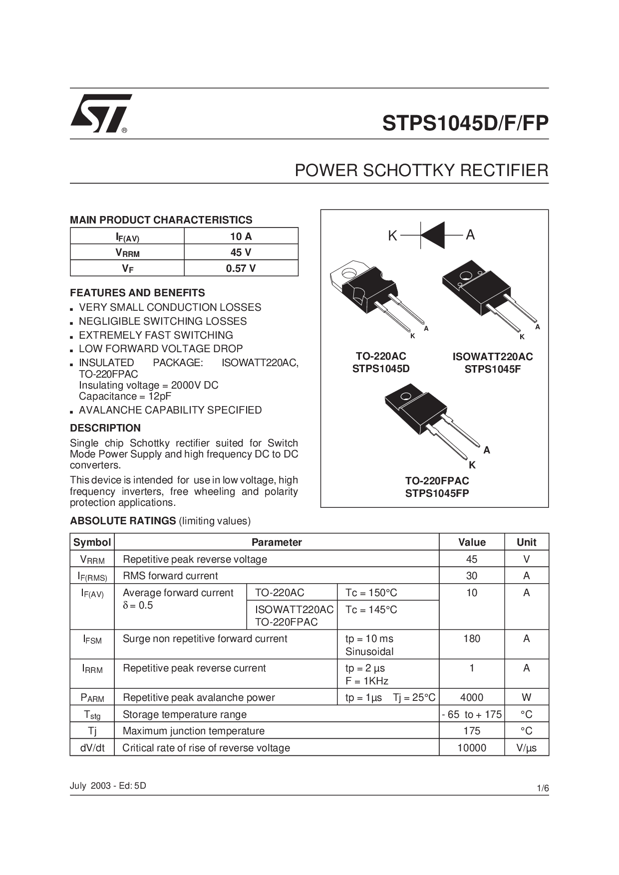 stps1045fp 最低价格0.85元 ,最高价格0.85元 ,平均价格 0.85元